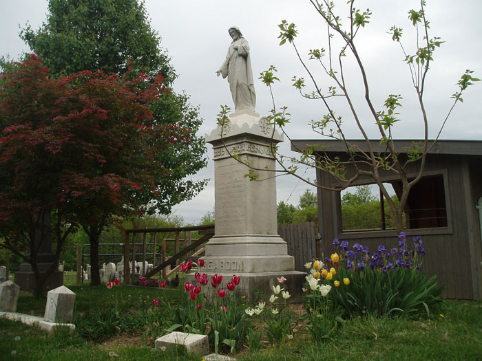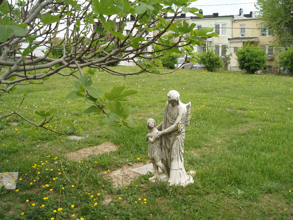 Under a fig tree, an angel guides a child on the consecrated land of St. Peter's Cemetery. |